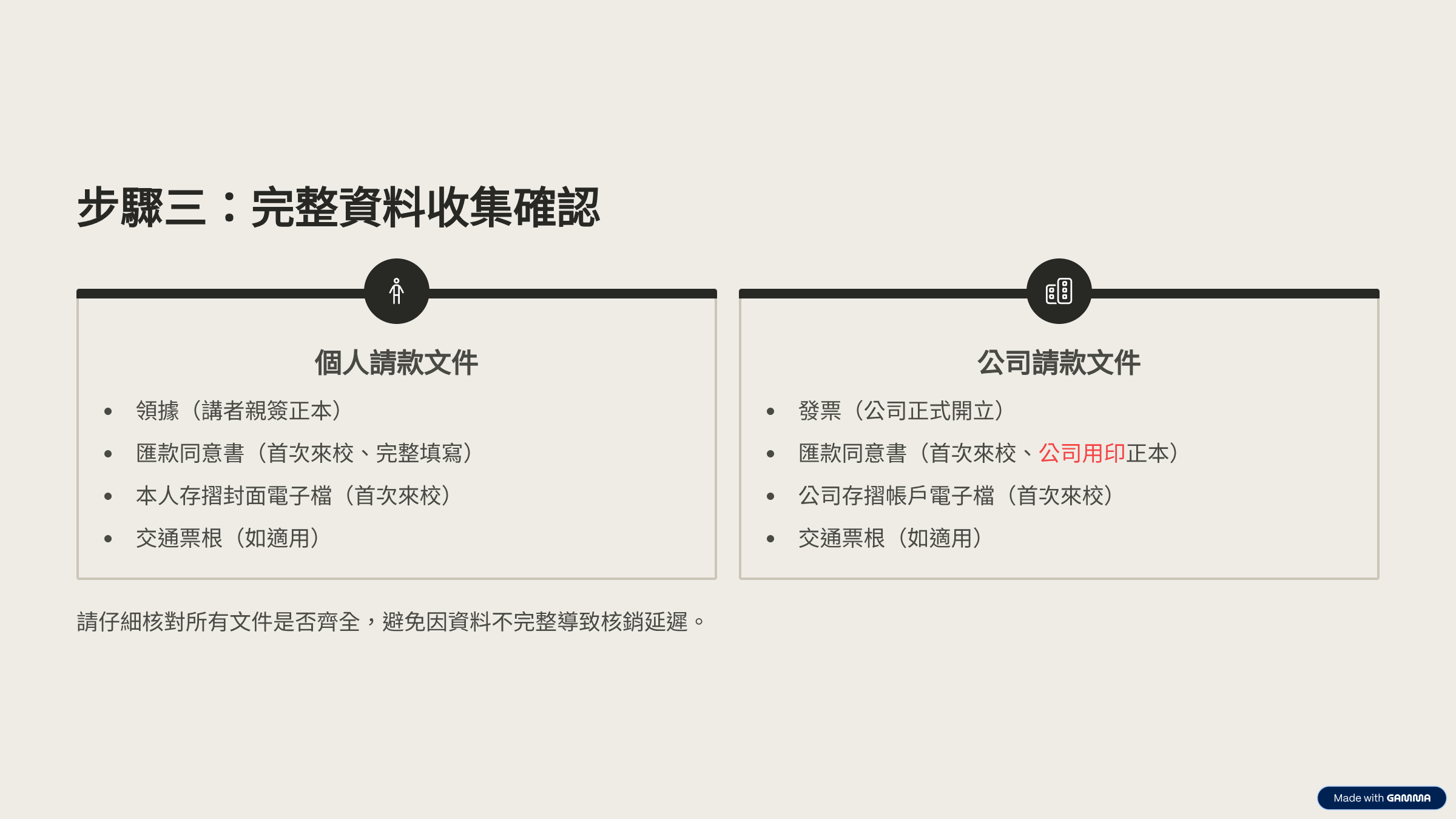 公司戶請款需開立發票,請事先與助理確認發票內容格式