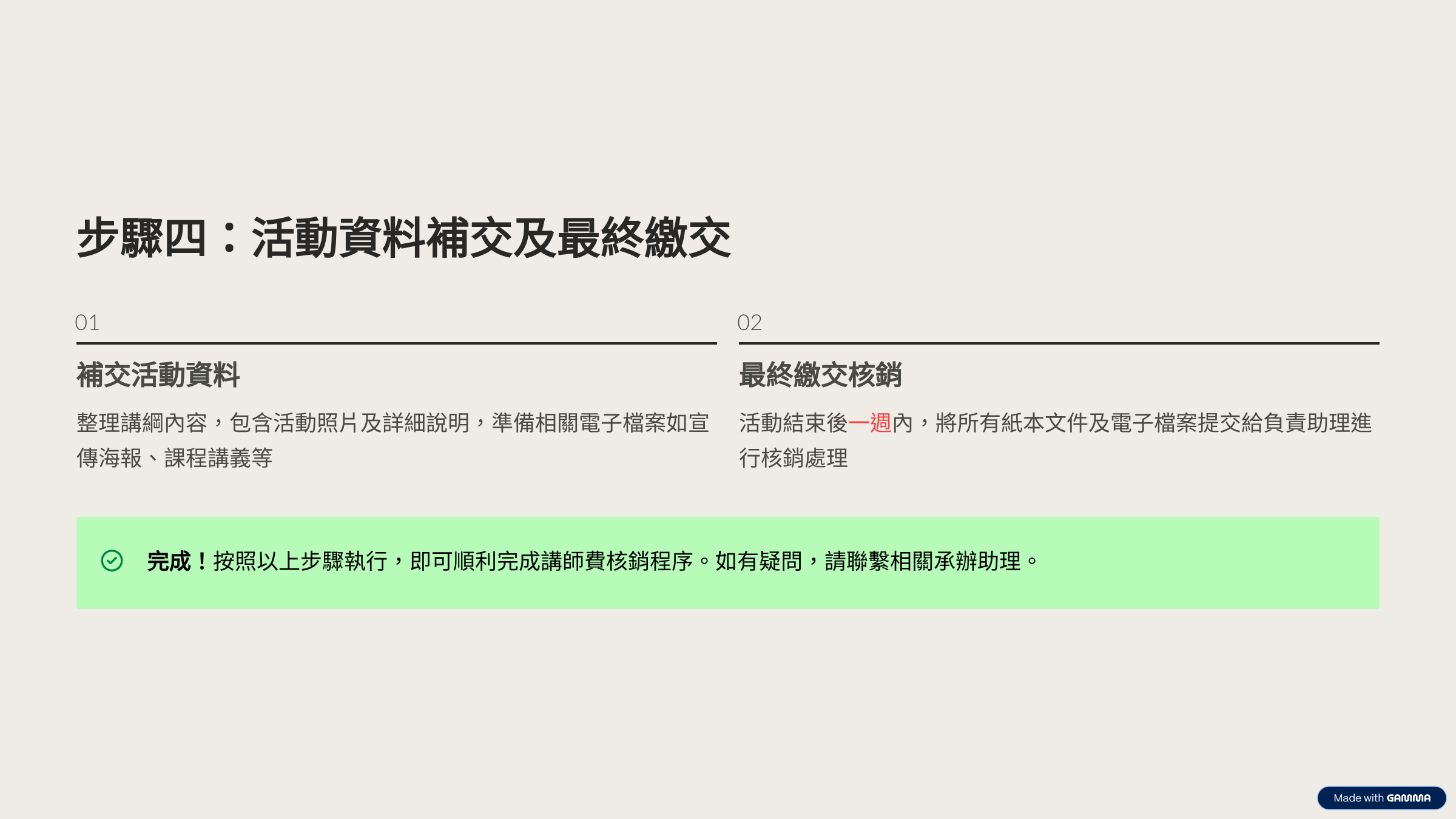 11/26–11/30:當天 15 點前繳交(不收 11/25 前單據)